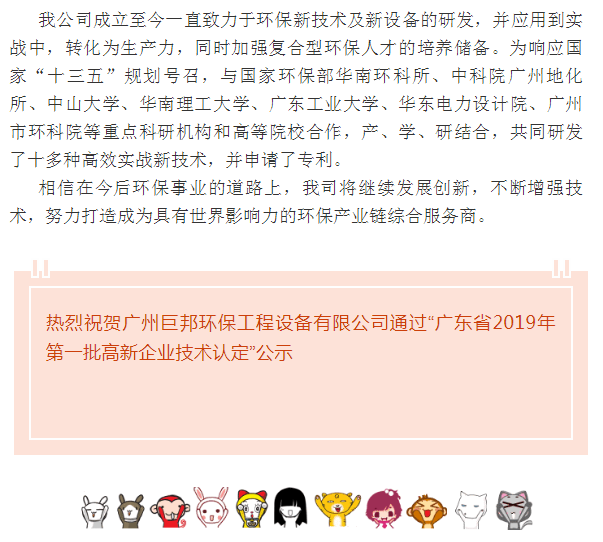 熱烈祝賀廣州巨邦環保通過“廣東省2019年第一批高新企業技術認定”公示
