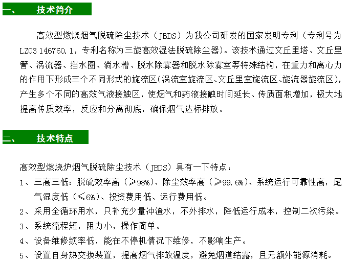 高效型燃燒煙氣脫硫除塵技術(shù)(JBDS)