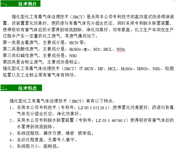 強(qiáng)化型化工有毒氣體治理技術(shù)(JBCT)