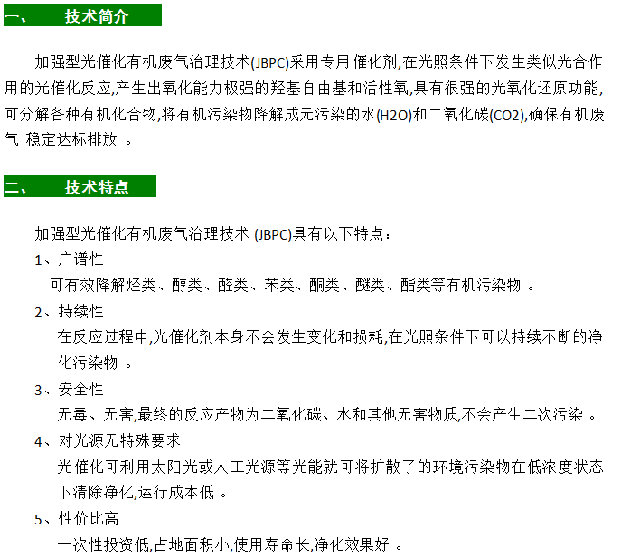 加強型光催化有機廢氣治理技術(JBPC)